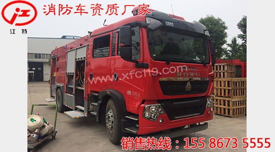 國(guó)五重汽豪沃T5G 2噸干粉,水和泡沫5噸聯(lián)用消防車(chē) 購(gòu)車(chē)熱線:15586735555 0722-3269119
