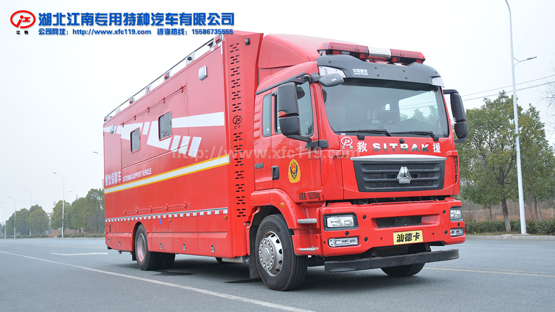 整車上裝為整體式框架結(jié)構(gòu),龍骨采用優(yōu)質(zhì)型材焊接,外蒙皮為航空鋁材,廂體四壁和頂板均為真空負(fù)壓復(fù)合板材結(jié)構(gòu),廂體外廓采用專用鋁型材包角,滿足輕量化和整車強(qiáng)度要求。車輛頂部四周配備頻閃警燈及場(chǎng)地照明燈,下裙邊設(shè)計(jì)有專用雜物艙;車門、艙門均采用專用型材結(jié)構(gòu),可靠性高并具有良好的密封性。廂體內(nèi)采用優(yōu)質(zhì)塑膠地板,防滑防腐耐酸耐堿;廂體四壁及頂部骨架填充隔音隔熱材料,室內(nèi)裝飾采用綠色環(huán)保材料,造型美觀易于清洗,防火阻燃等級(jí)符合GB8624B1標(biāo)準(zhǔn)。整車優(yōu)質(zhì)烤漆工藝主色為消防紅,可以根據(jù)用戶需求設(shè)計(jì)軍警制式外觀車貼。